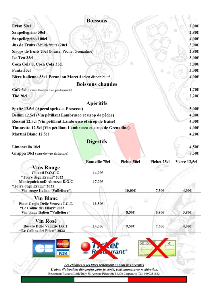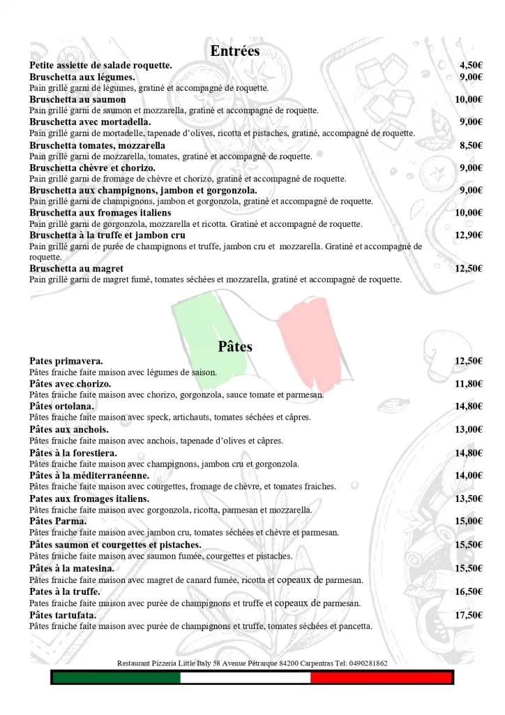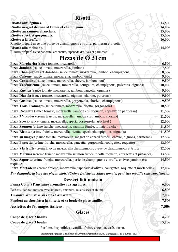 Little Italy c’est un restaurant installé à Carpentras depuis 2013, la cuisine est simple et veut porter des saveurs de la cuisine italienne en France.